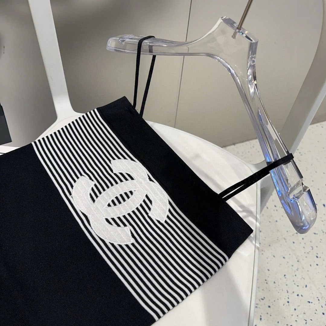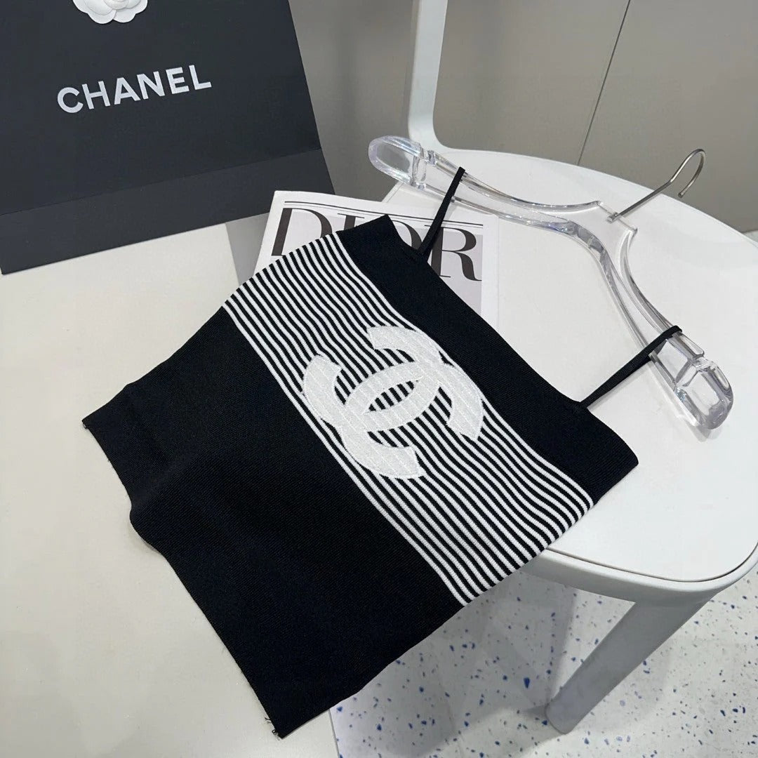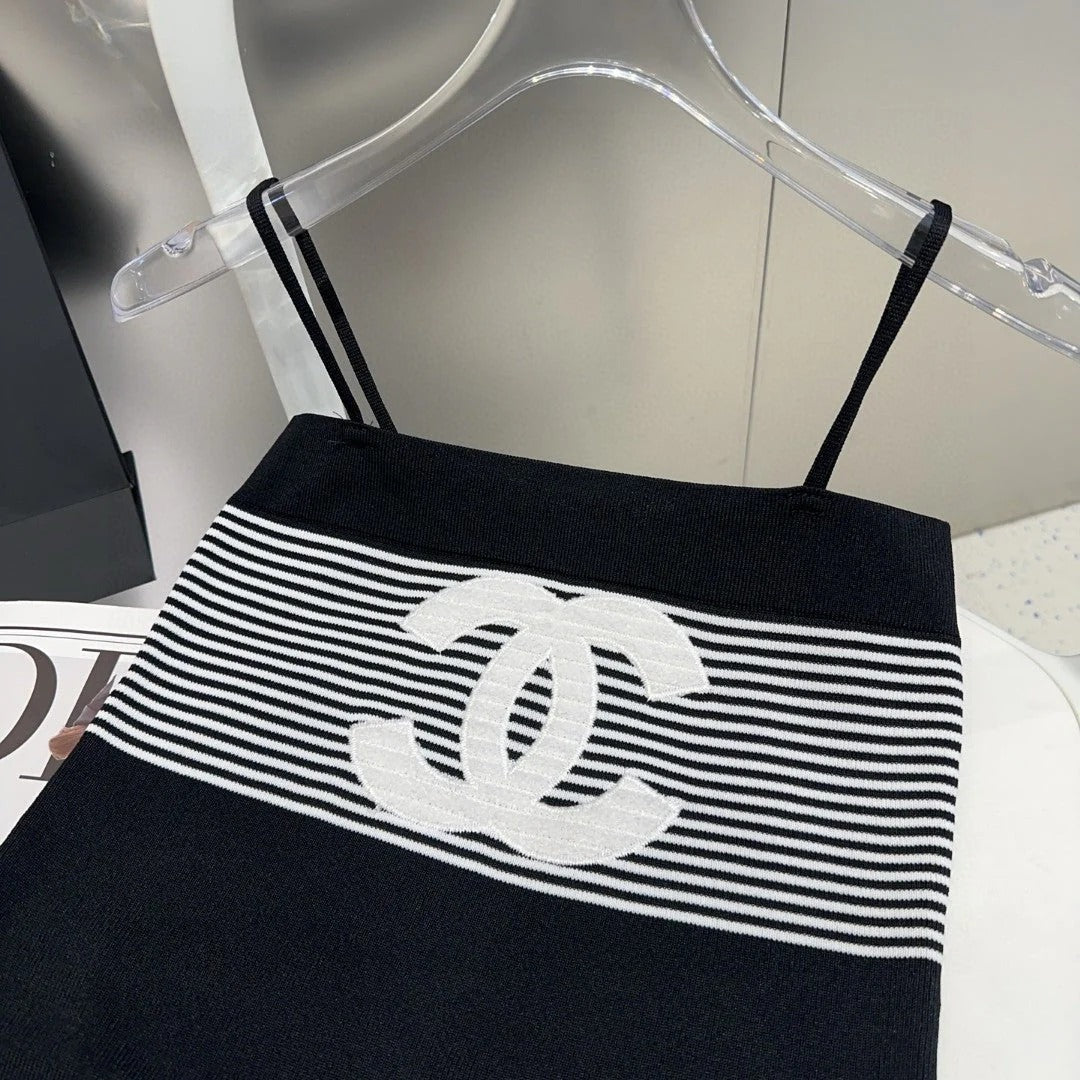 STRIPED CAMISOLE 610345 IN BLACK AND WHITE COTTON RIBBED