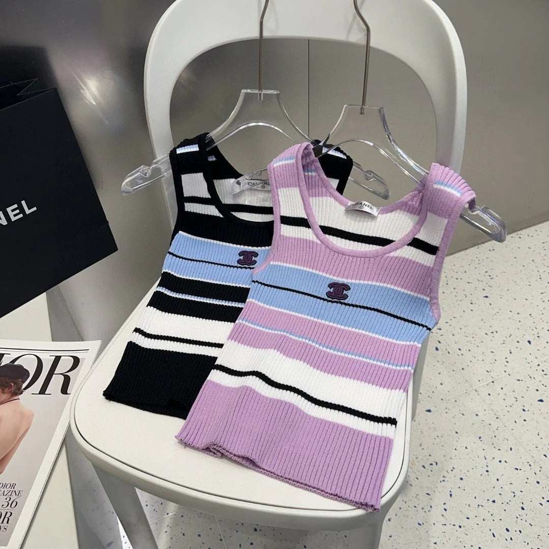 STRIPED TANK TOP 612058 IN BLUE WHITE AND PURPLE COTTON RIBBED