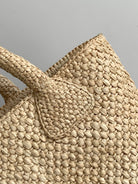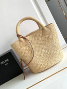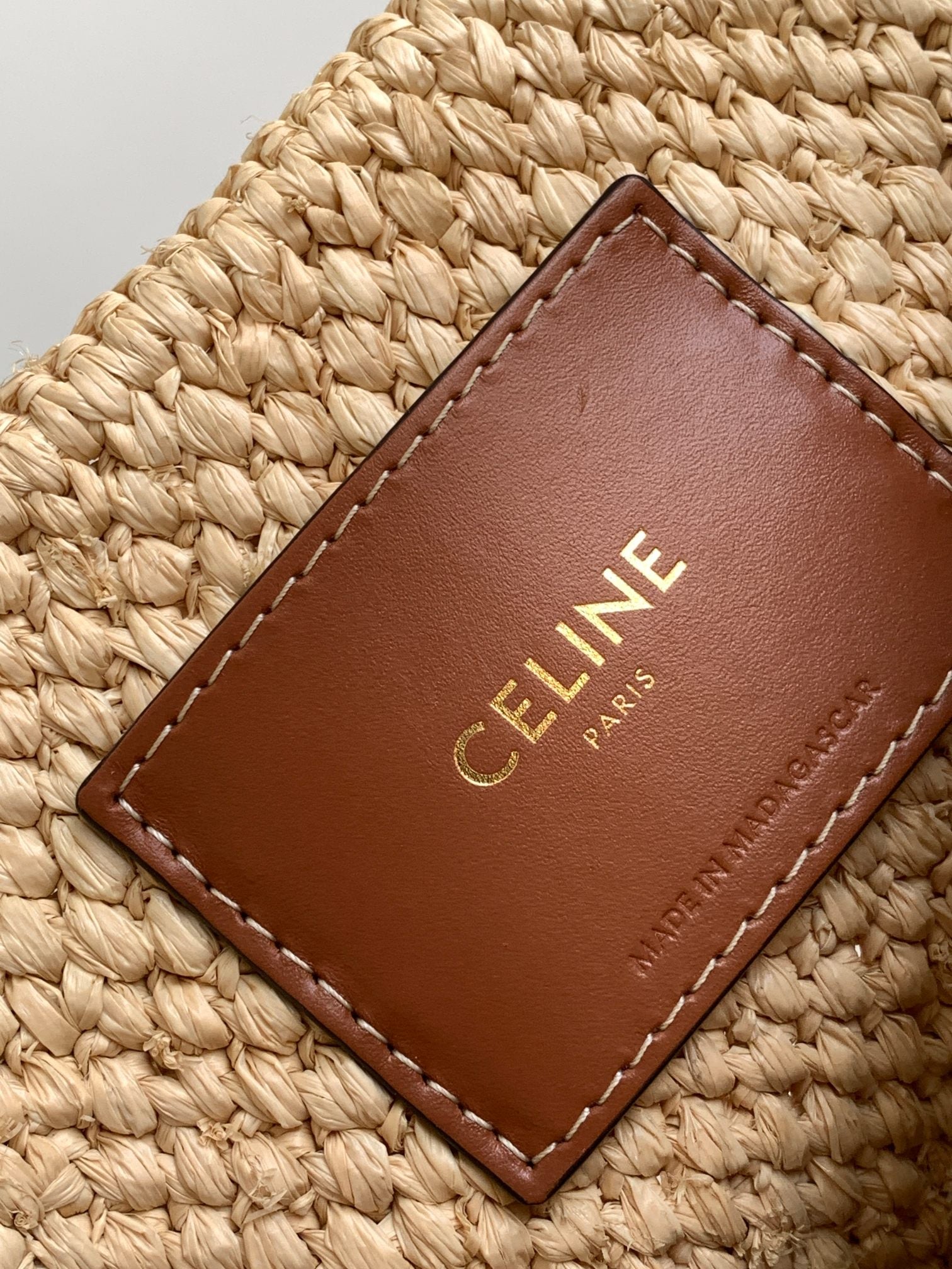 teen triomphe straw bucket bag 23cm raffia brown calfskin