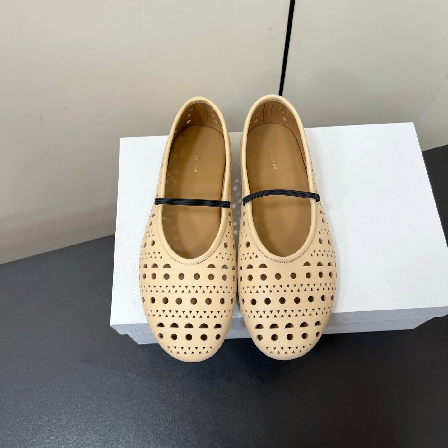 The Row Garden Mary Janes Flats Beige Calfskin 340032