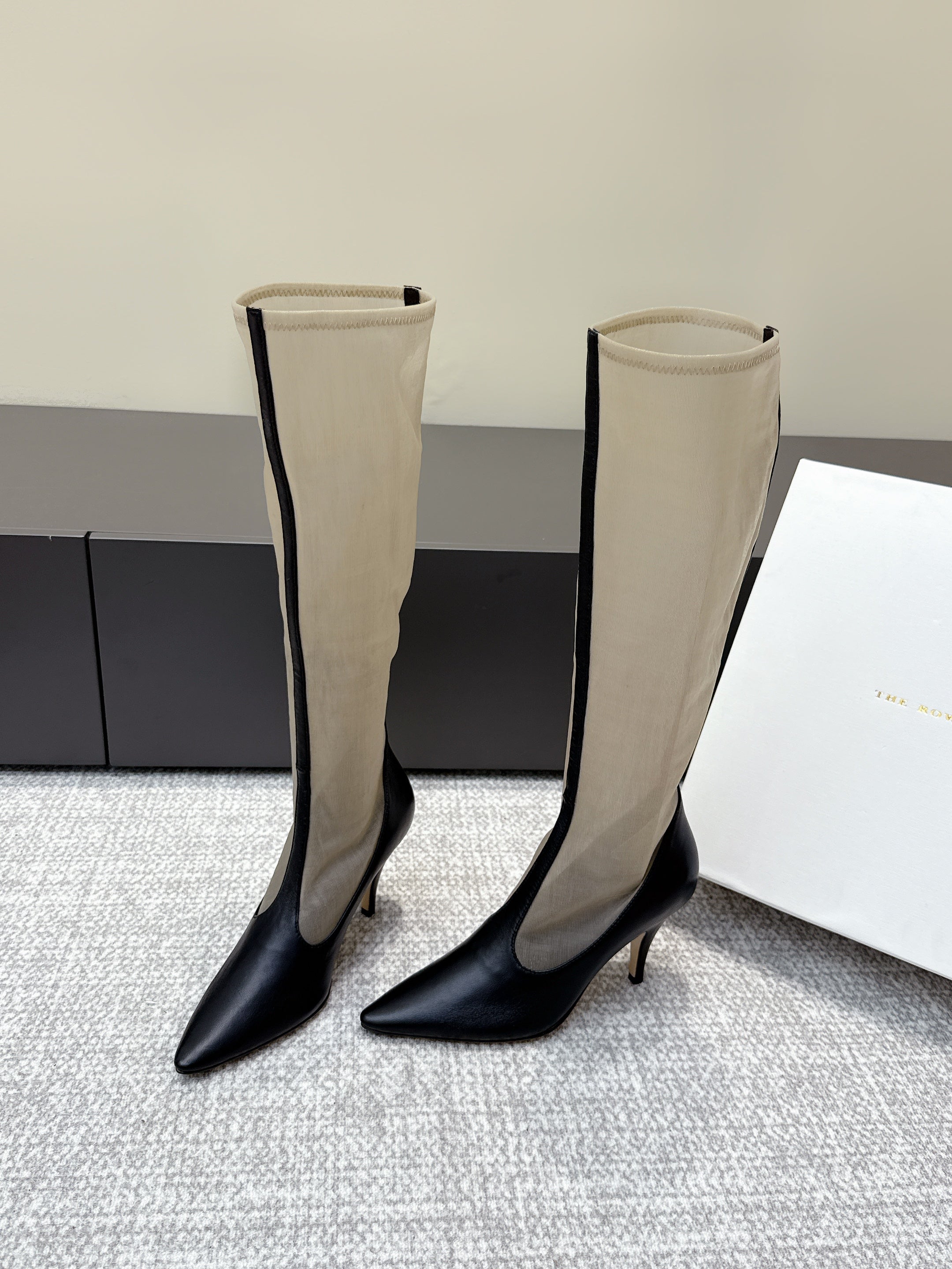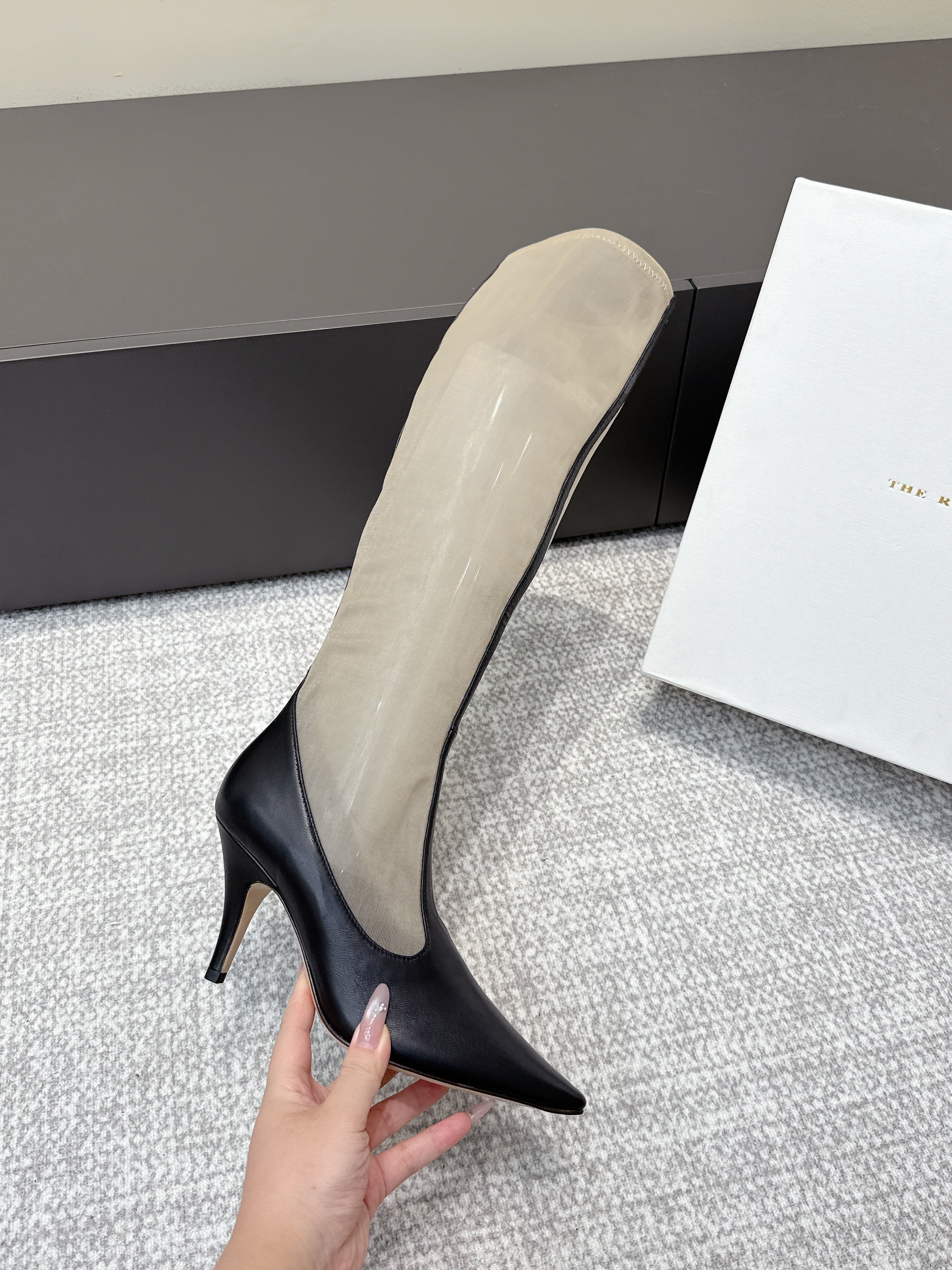 The Row Knee-High Boots 85mm Black Mesh Cowhide 451298