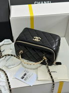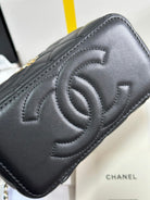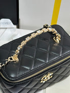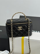VANITY CASE 18 IN BLACK CALFSKIN GOLD HARDWARE