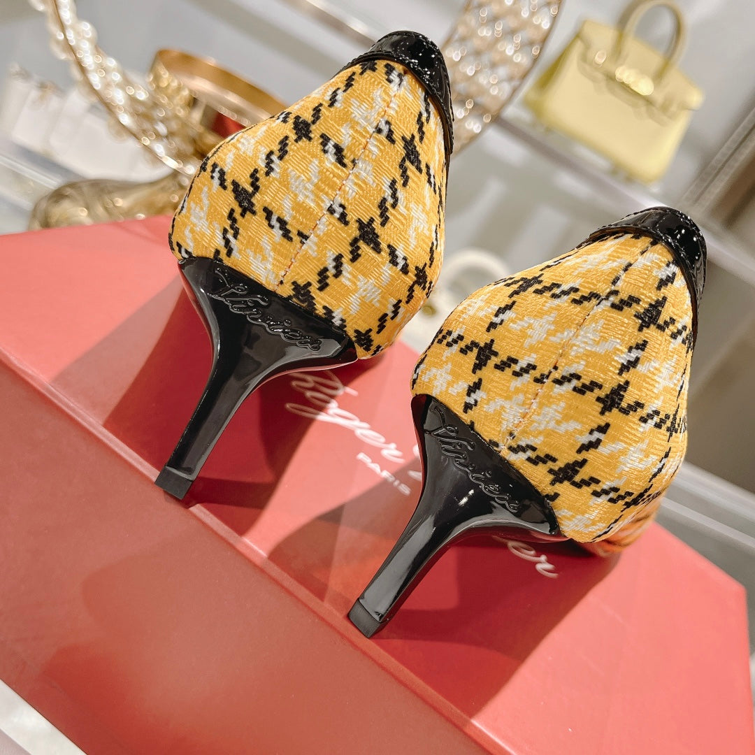 Viv Canard Pumps 55 Black Yellow Fabric