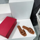 Vlogo Cut-Out Tan Calfskin Slide Sandal