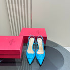 VLOGO SIGNATURUE CERULEAN BLUE PATENT LEATHER SLINGBACK PUMP 80MM