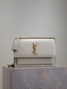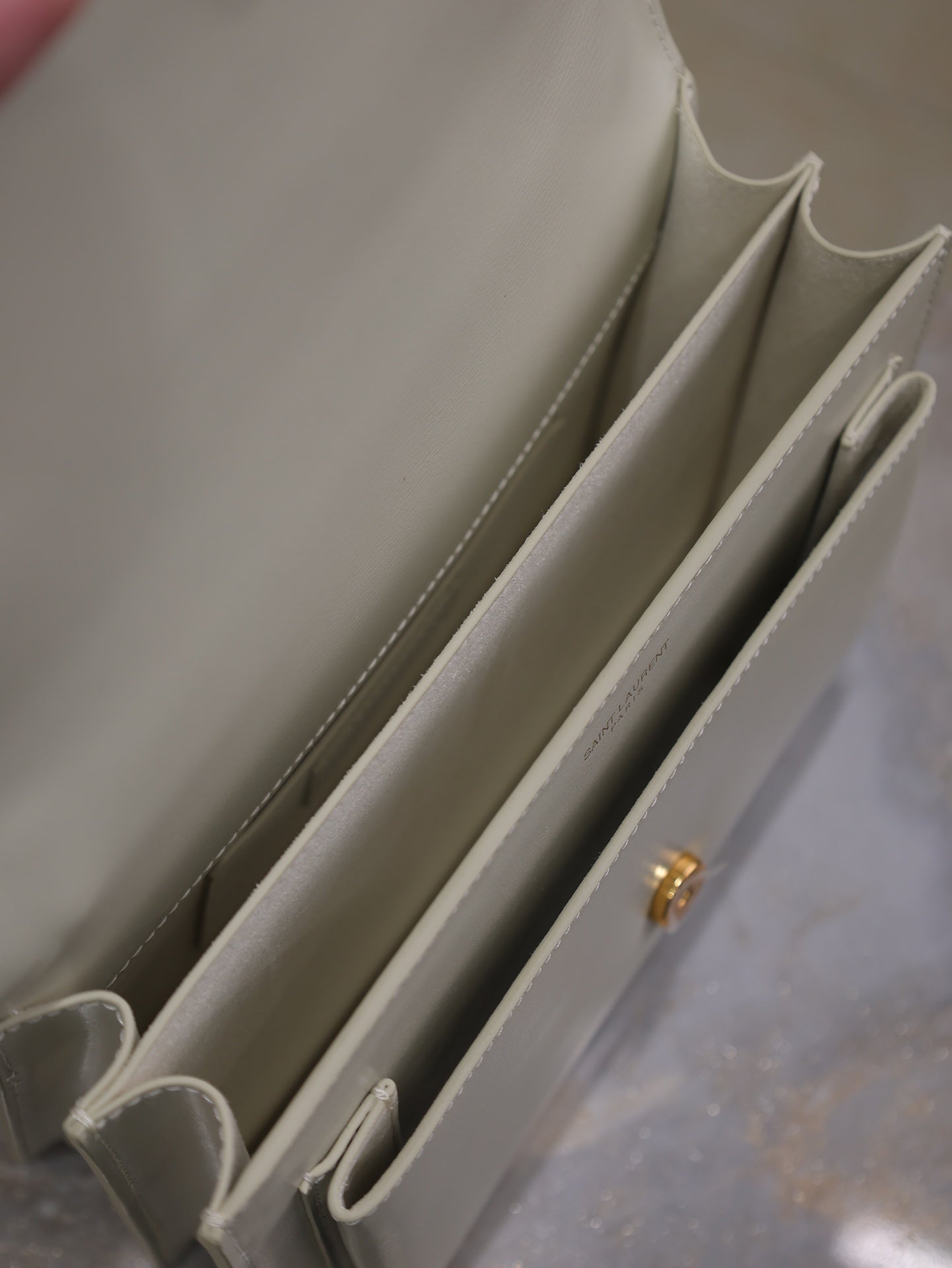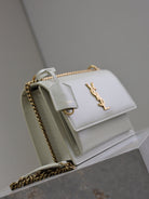 YSL Medium Sunset Shoulder Bag 22cm White Cowhide