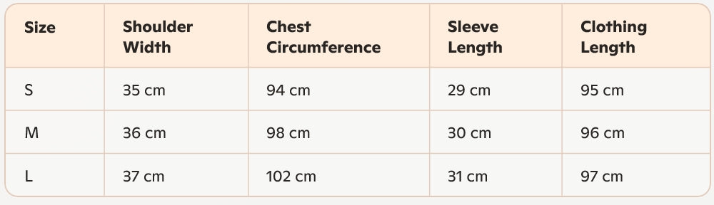 - Size : S, M, L